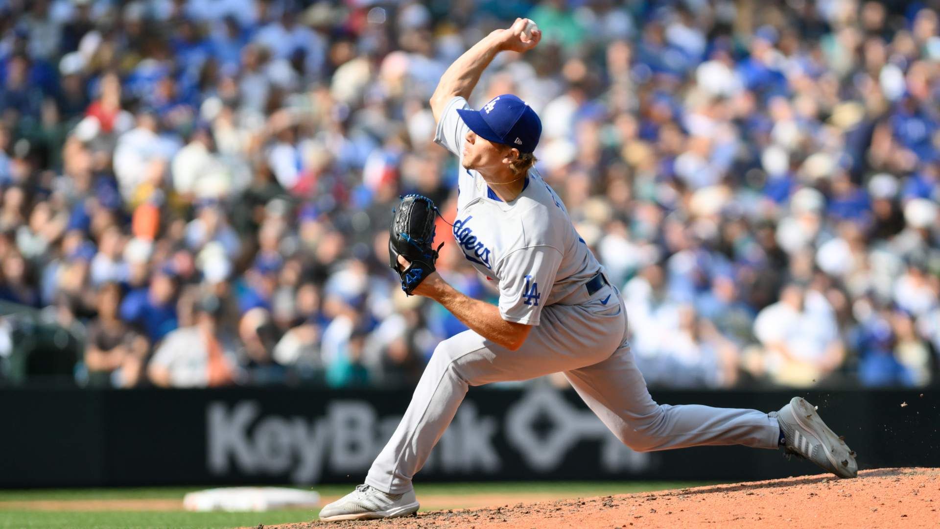 Sep 17, 2023; Seattle, Washington, USA; Los Angeles Dodgers relief pitcher Gavin Stone (71) pitches to the Seattle Mariners during the sixth inning at T-Mobile Park. Mandatory Credit: Steven Bisig-USA TODAY Sports