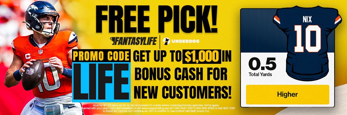 Sign up for Underdog using our promo code: LIFE and you can earn up to $1,000 Bonus Cash on your first deposit!