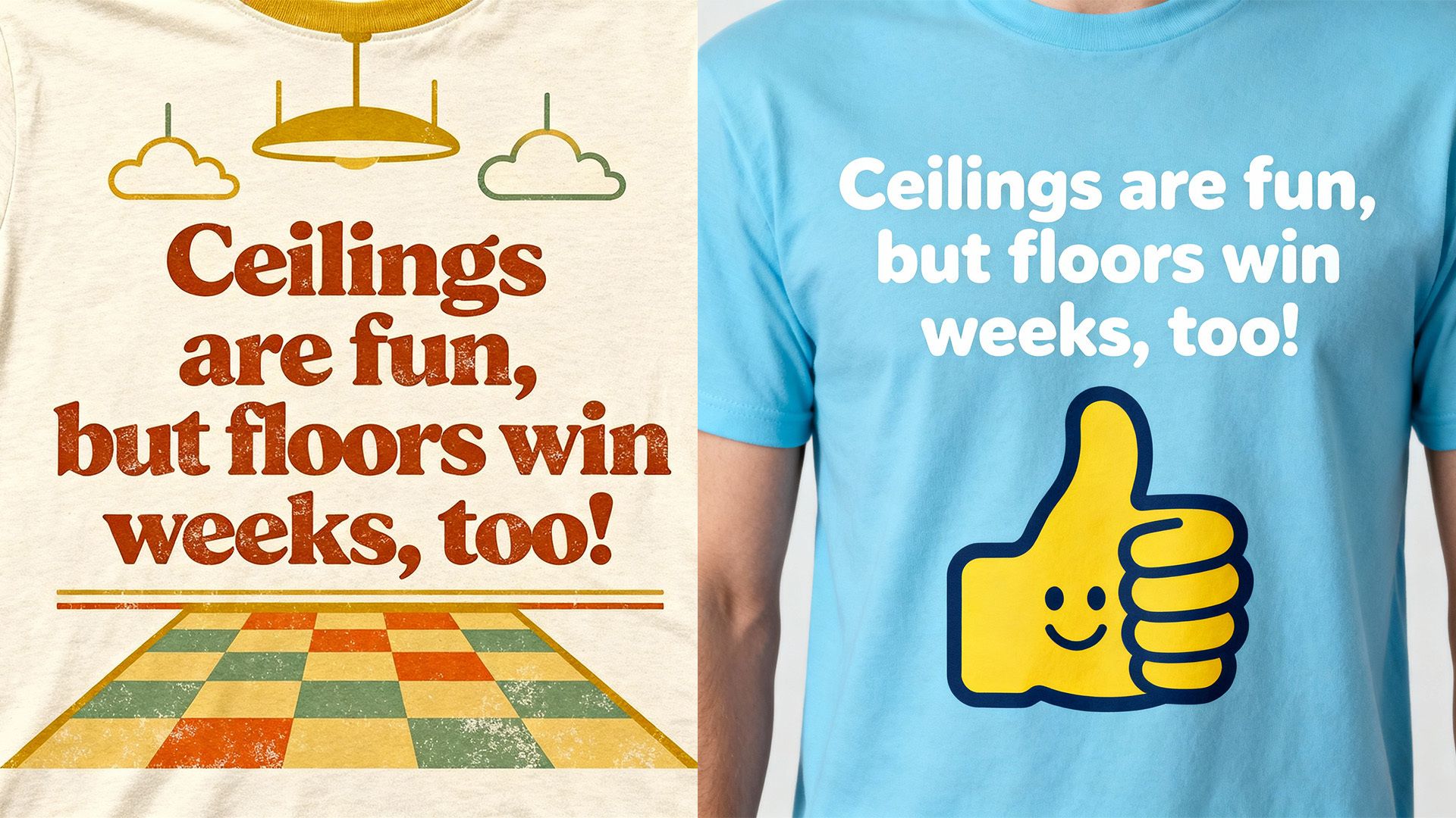 In this week’s QB streamers column, Laghezza coined a floor-related line about Spencer Rattler. Our head of design has more serious tasks to handle (hello George!), so we asked Comet to turn it into a series of T-shirts. Check the column and then download Comet and get to starting your own online shop.