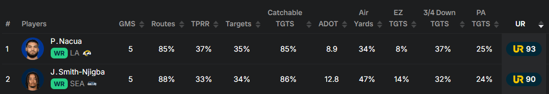 From a Utilization perspective, he’s neck-and-neck with Nacua across the board: