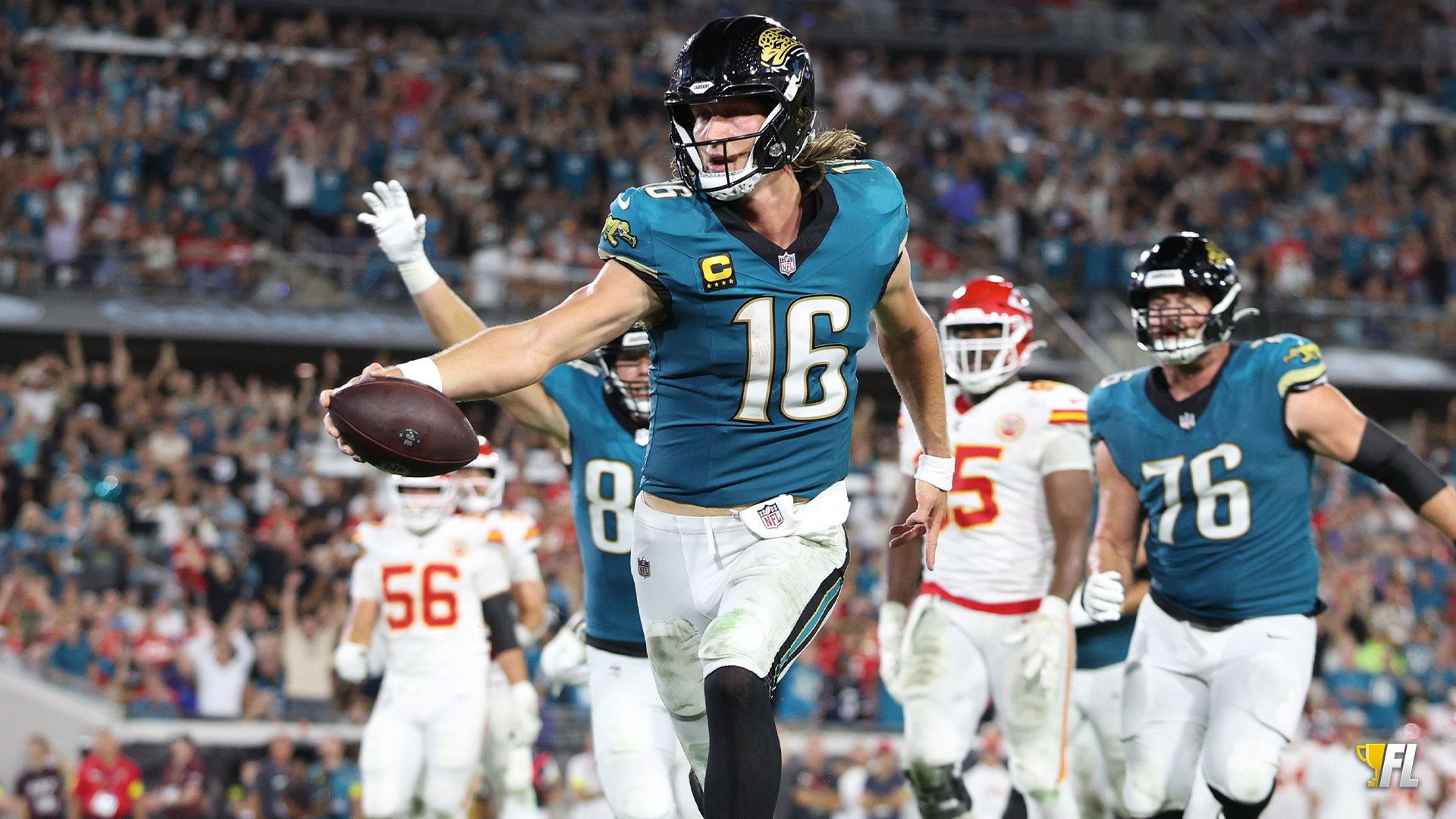 Are they still recovering down in Duuuuuuvaaaaal?! Four times in the fourth quarter the score was either tied or the lead changed. After Kareem Hunt put the Chiefs up by four with 1:45 left, Trevor Lawrence marched the Jaguars and literally picked himself off the ground to run in the winning TD for a 31-28 signature win on MNF. So many fantasy heroes in a game that Matthew described perfectly:
