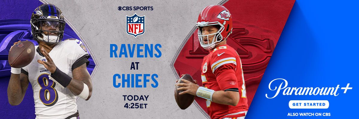 Catch Lamar Jackson and Patrick Mahomes facing off today at 4:25 p.m. ET! With the NFL on CBS and Paramount+, you can watch local and featured national games like this all season long.