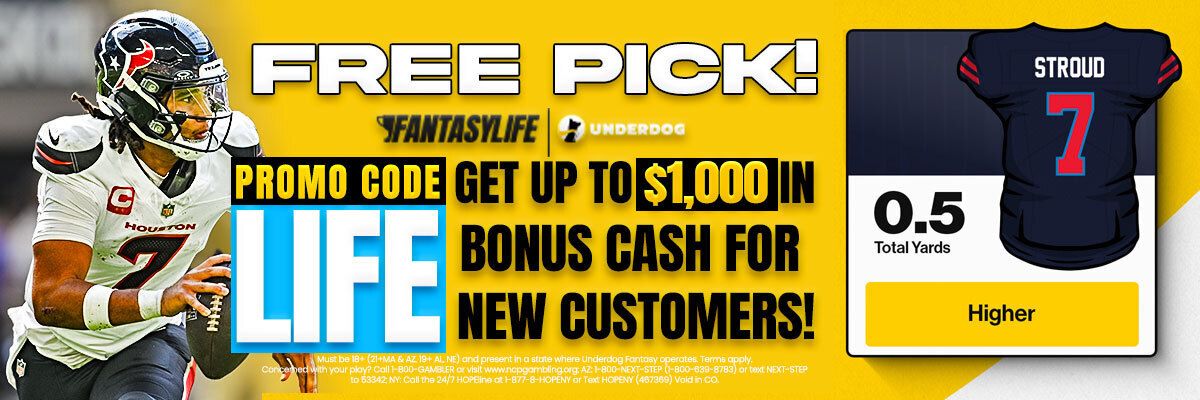 Sign up for Underdog using our promo code: LIFE and you can earn up to $1,000 Bonus Cash on your first deposit!