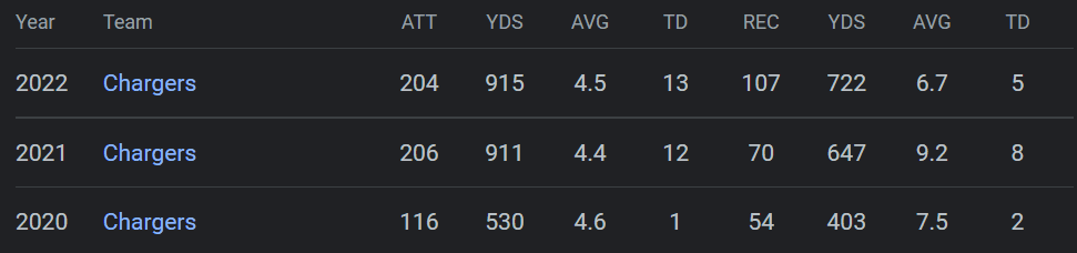 Ekeler certainly deserves a raise for how well he's performed for the Chargers since signing a 4-year, $24,500,000 contract in 2020. He's improved each season, including a career year in 2022: