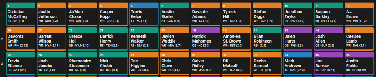 Yes, your eyes are not fooling you. That's Ridley going off in the middle of the third round before DK Metcalf, Deebo Samuel, and Mark Andrews.