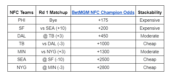 Outside of Christian McCaffrey, the 49ers are not particularly expensive to stack, considering their odds of reaching the Super Bowl.