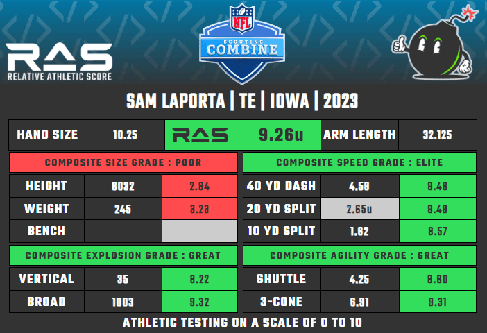 LaPorta was previously unranked, but after a strong showing in Indianapolis climbed into Jeremiah's top 50. The Iowa product was far more productive than Luke Musgrave and Darnell Washington. While those two put up astronomical combine performances, LaPorta wasn't far behind with the 77th-best RAS out of 1,020 TEs since 1987.