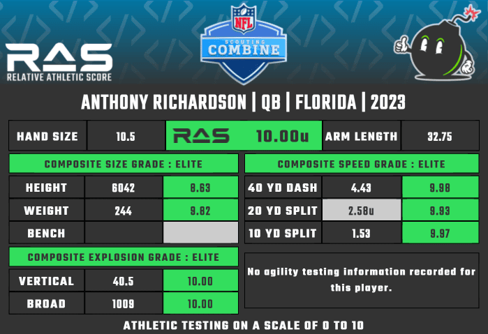 The quarterback board is tightening up, with Richardson climbing four spots to No. 10. He has special traits and smashed the combine with the best QB performance ever.