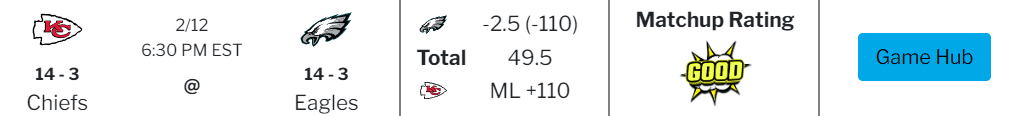 The Chiefs are going to be fully prepared for this contest, and Andy Reid is known for his work off a bye. He’s 28-4 after a bye week in his NFL career, and the extra time should help Mahomes get a bit healthier. Still, the Eagles have been the most impressive team in football this season, and their roster is simply better than the Chiefs’ from top to bottom.