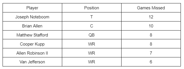 This isn’t a creative or hot take, but it is rooted in reality. The Rams ran bad in the injury department in 2022, especially on offense. They had multiple starters miss significant portions of the season.